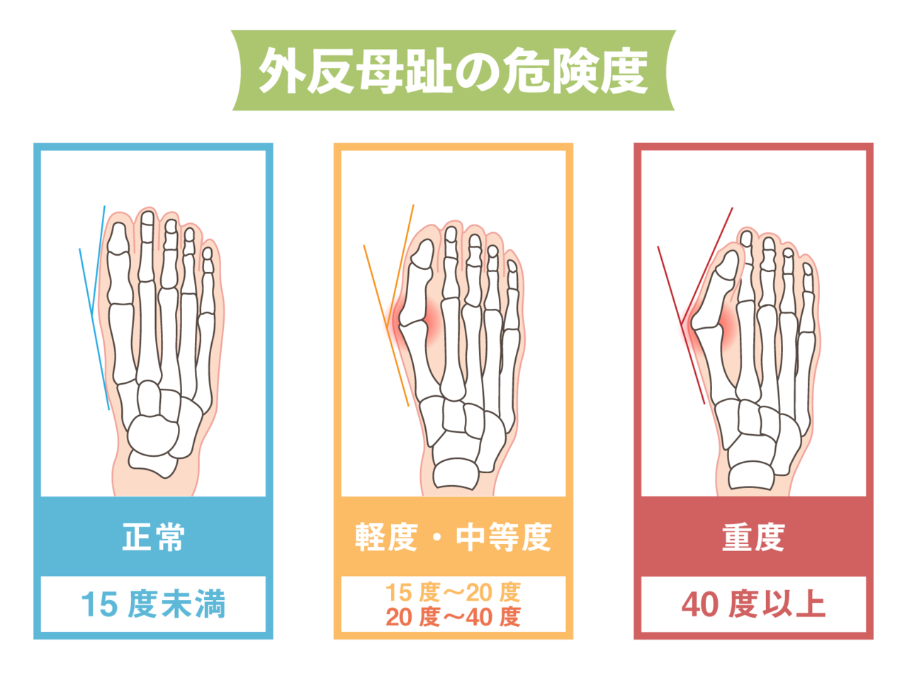 外反母趾は、足の親指(母趾)が外側へ曲がり、つけ根の関節(MP関節)が内側に突き出してくる状態を指します。
