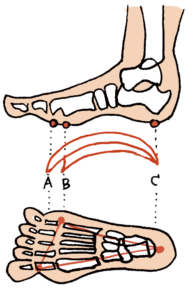足には「内側縦アーチ・外側縦アーチ・横アーチ」という3つのアーチがあり、体重の分散・衝撃吸収・歩行の安定に欠かせません。