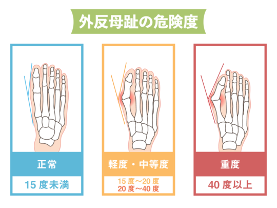 外反母趾は、足の親指(母趾)が外側へ曲がり、つけ根の関節(MP関節)が内側に突き出してくる状態を指します。