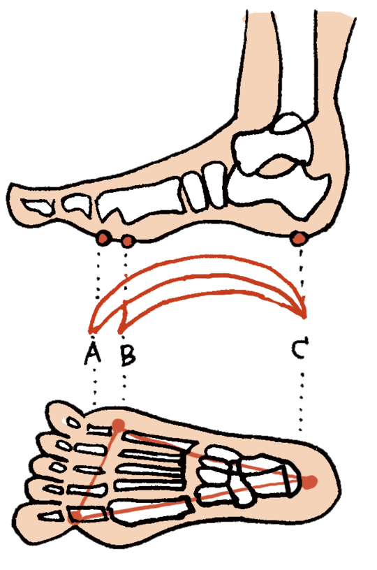 足には「内側縦アーチ・外側縦アーチ・横アーチ」という3つのアーチがあり、体重の分散・衝撃吸収・歩行の安定に欠かせません。