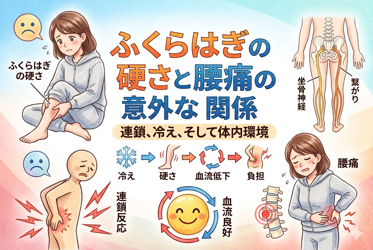 当院が注目したのは、単なる骨の変形ではなく、「ふくらはぎの硬さ」から始まる血流低下の連鎖です。 冷えや硬さによって滞った血流が、股関節や腰の神経を「酸欠状態」にし、過敏な痛みを引き起こしてるのでは?と判断しました。