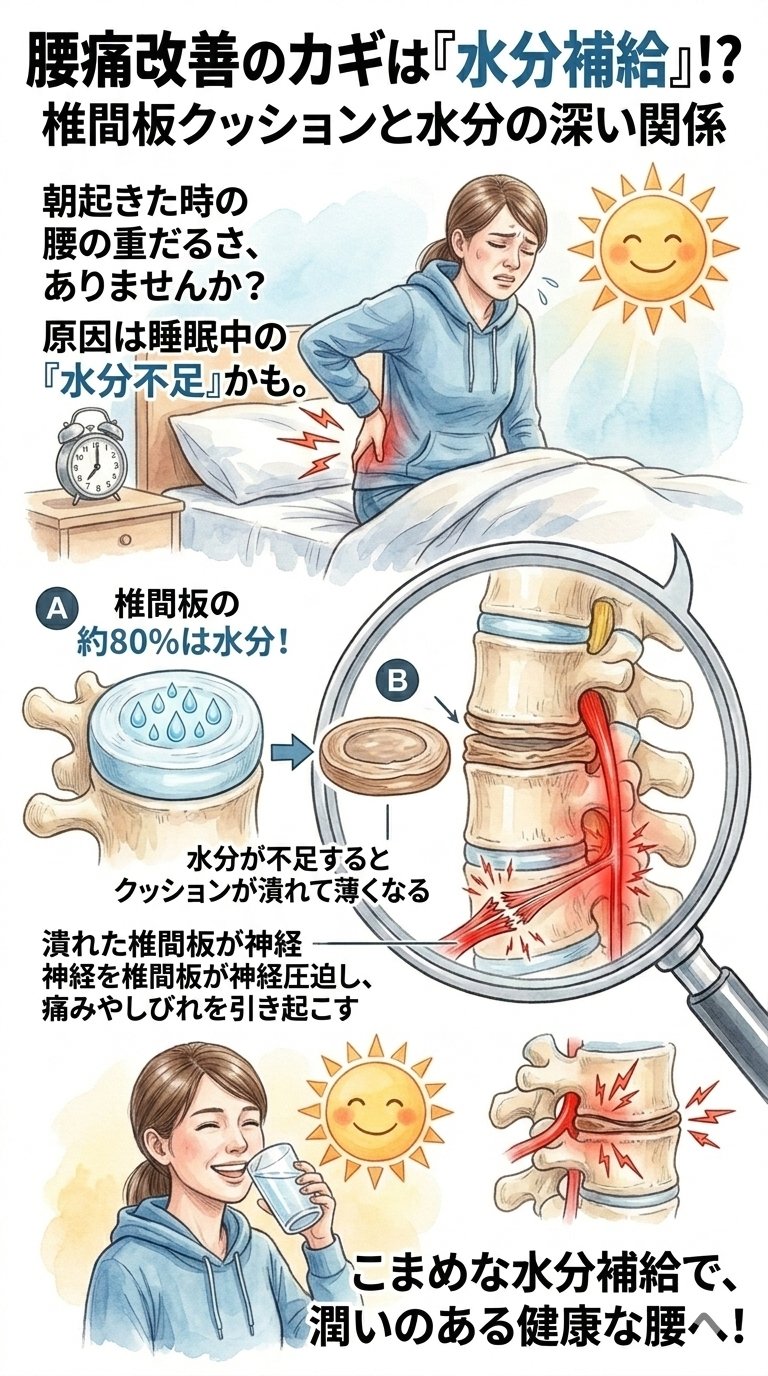 この記事では、なぜ水分補給が腰痛の改善に役立つのかを、医学的な視点からわかりやすく解説します。