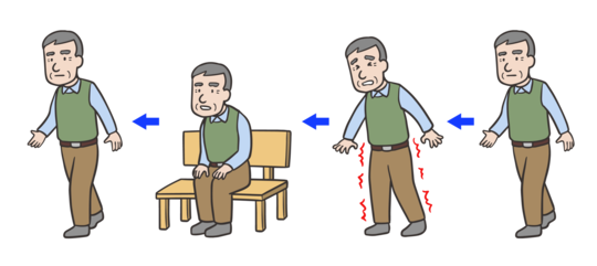 これは、脊柱管狭窄症(せきちゅうかんきょうさくしょう)に多く見られる間欠性跛行(かんけつせいはこう)という症状です。